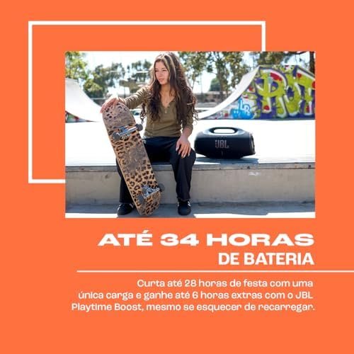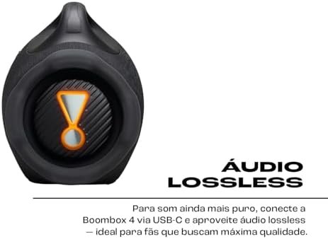 Sobre este item SOM JBL PRO COM AI SOUND BOOST. A Boombox 4 traz dois woofers maiores, dois tweeters e três radiadores passivos para som nítido e potente. A tecnologia AI Sound Boost ajusta o áudio em tempo real para mais potência e menos distorção. BATERIA DE ATÉ 34H COM PLAYTIME BOOST. Aproveite até 28h de reprodução contínua e adicione até 6h extras com o recurso Playtime Boost. Mantenha a vibe acesa de uma festa para a outra, sem se preocupar com recarga. RESISTENTE À ÁGUA E POEIRA – IP68 Com proteção IP68, a Boombox 4 é à prova d’água e poeira. Leve para a praia, piscina ou onde quiser, sem medo de estragar a diversão, ou o som. PERSONALIZE OS GRAVES COM UM TOQUE Escolha entre os modos Deep Bass ou Punchy Bass para combinar com seu clima. Basta um toque no botão para ajustar os graves ao estilo da sua música. ÁUDIO LOSSLESS, AURACAST E DESIGN SUSTENTÁVEL Curta áudio sem perdas via USB-C, conecte múltiplas caixas JBL via Auracast e leve sua música com um design mais leve, feito com plástico e tecido reciclados.