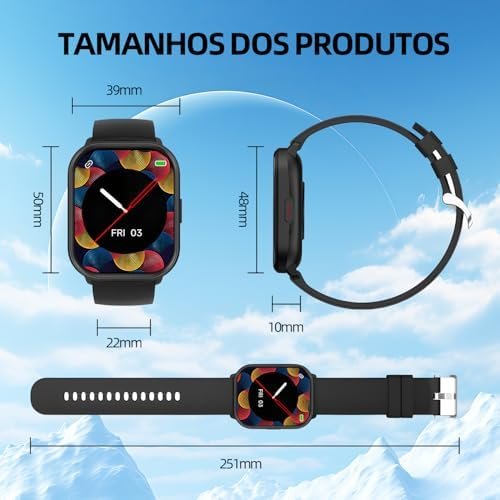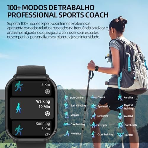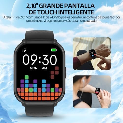Desfrute de uma experiência visual superior com a tela TFT de 2.01 polegadas e resolução 240×296. Receba notificações instantâneas de chamadas, SMS e WhatsApp, mantendo você sempre informado sem precisar pegar o celular.