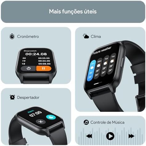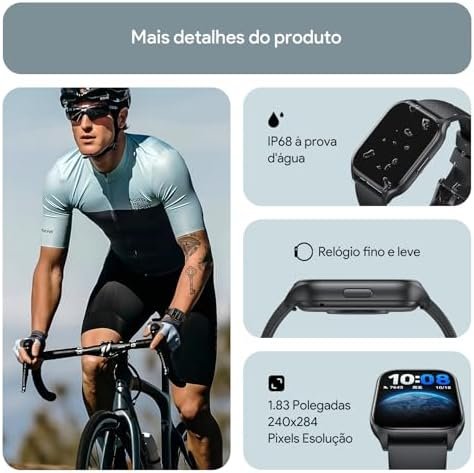 O produto chegou em excelente estado de embalagem, incluindo uma película protetora e um manual, juntamente com um cabo de carregamento. Ele é entregue sem carga, e o manual recomenda realizar um carregamento completo antes do primeiro uso.O relógio conecta-se via Bluetooth ao aplicativo indicado no manual. Ele oferece uma ampla gama de opções para marcação de esportes, superando dez modalidades, desde musculação até hóquei. Além disso, o dispositivo é compatível com o Strava, permitindo o envio de suas atividades.O relógio também possibilita a recepção de chamadas, que podem ser atendidas diretamente pelo dispositivo. A bateria teve uma duração impressionante de sete dias completos, mesmo com as funções ativas e o Bluetooth ligado.Entre suas funcionalidades, o relógio monitora batimentos cardíacos e pressão arterial. Recomendo a aquisição de uma película protetora, pois a tela é relativamente grande e suscetível a impactos. O dispositivo ainda permite o monitoramento de músicas, passos, sono, alarmes, e respiração, entre outros recursos.