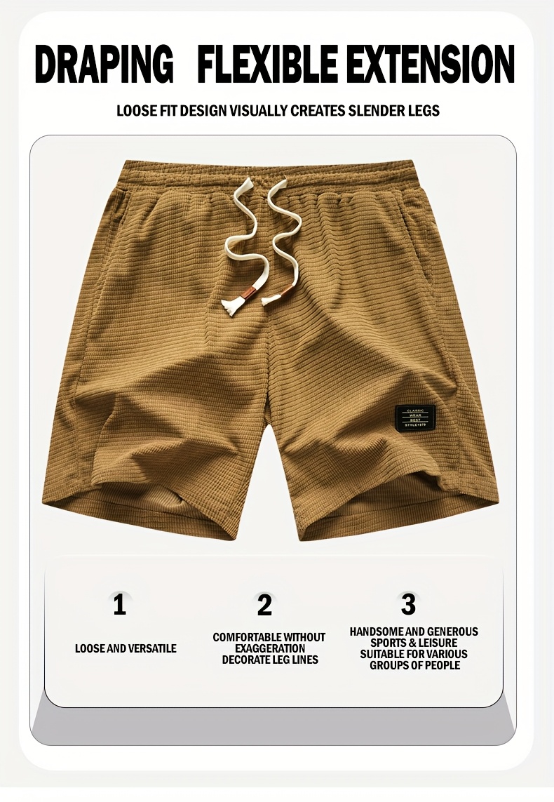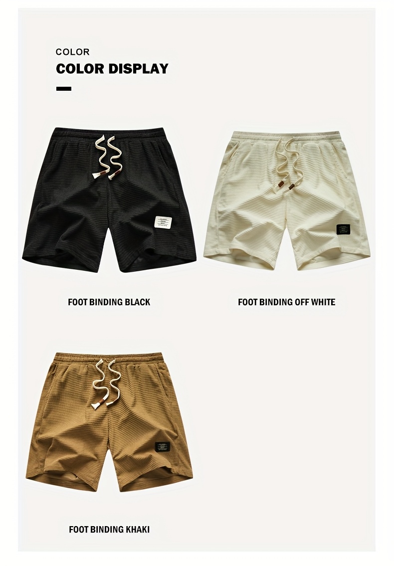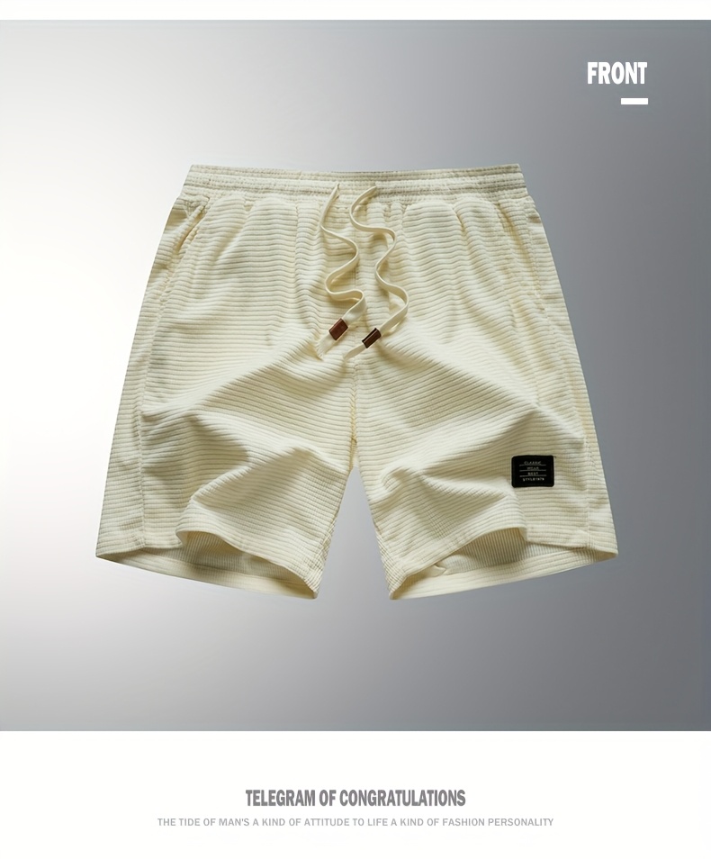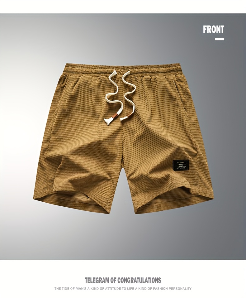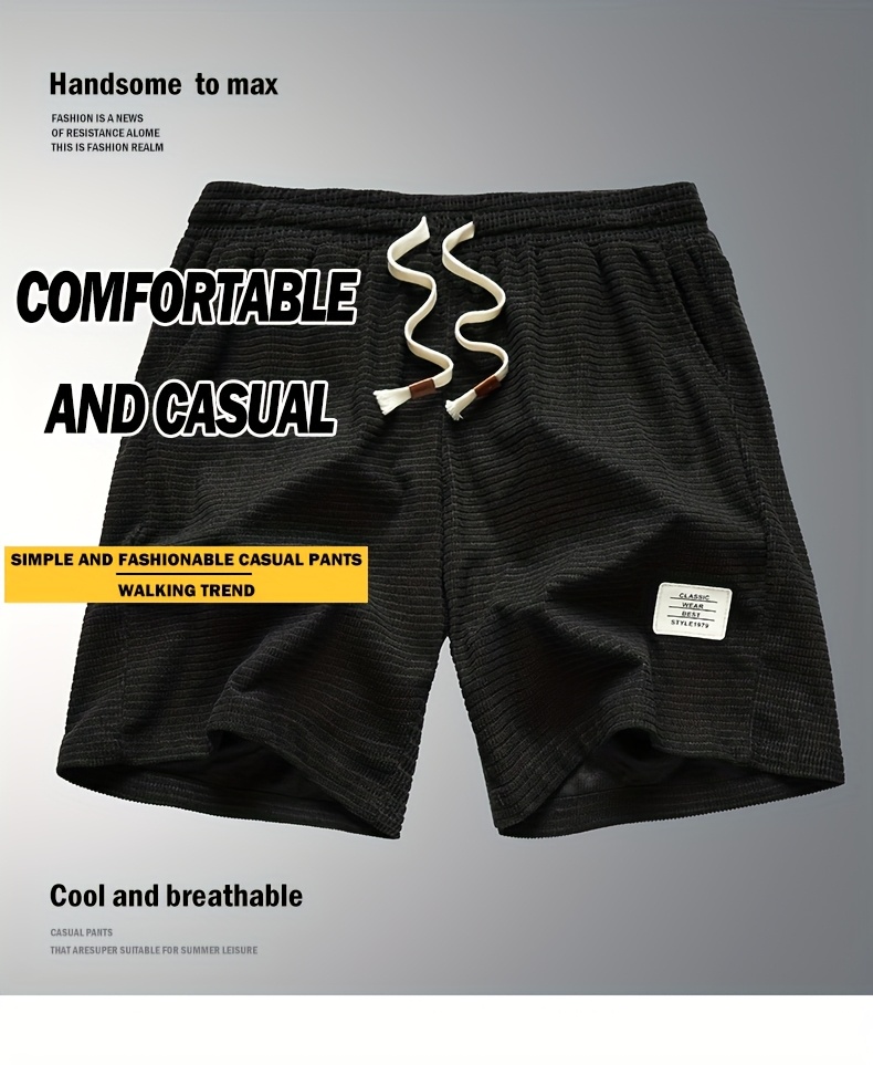 Shorts de Veludo Cotelê Leves para Homens com Cintura com Cordão & Bolsos – Shorts de Natação de Verão Adequados para Praia, Uso Casual – Tecido de Veludo Cotelê (Lavável à Mão)