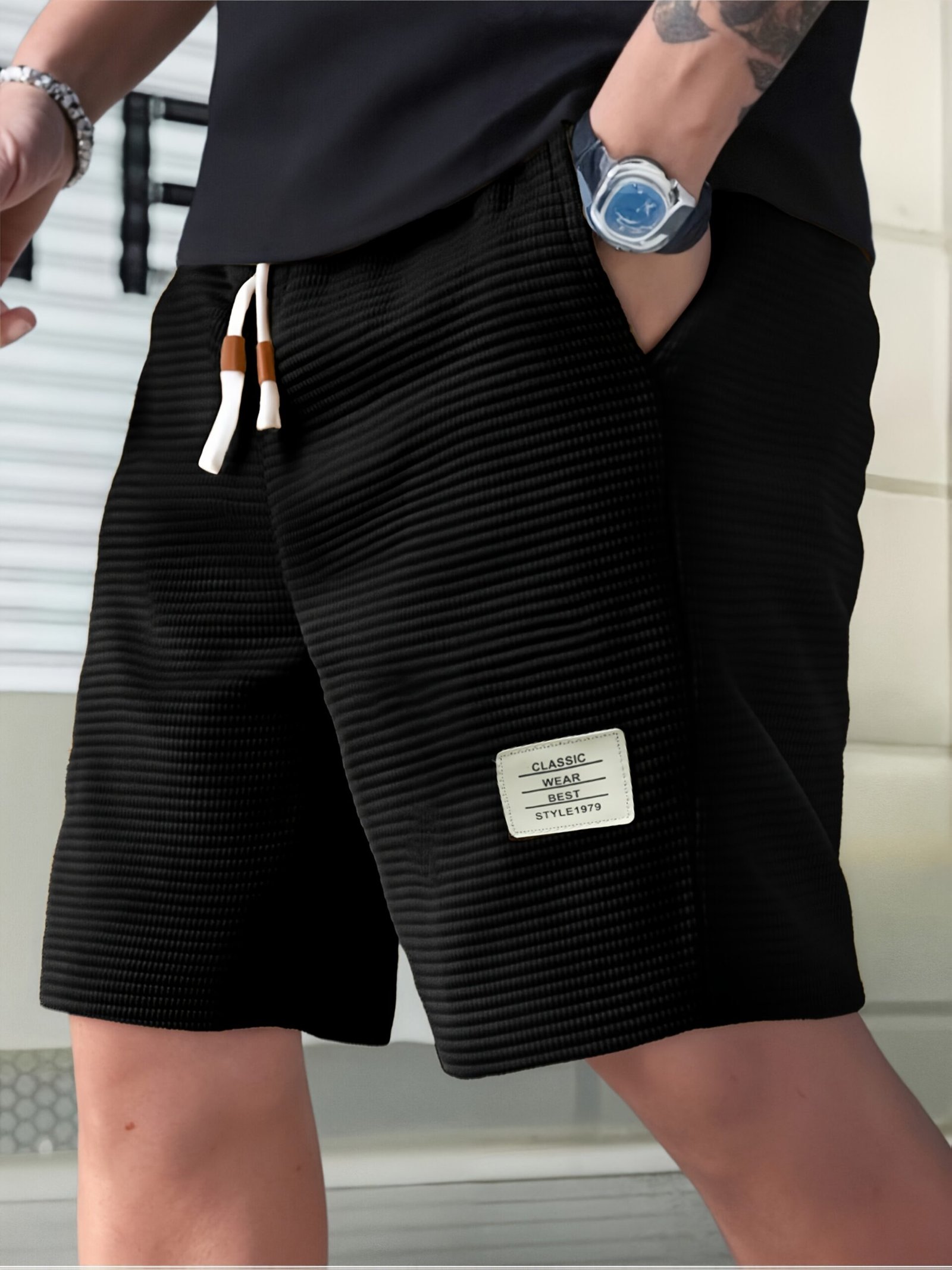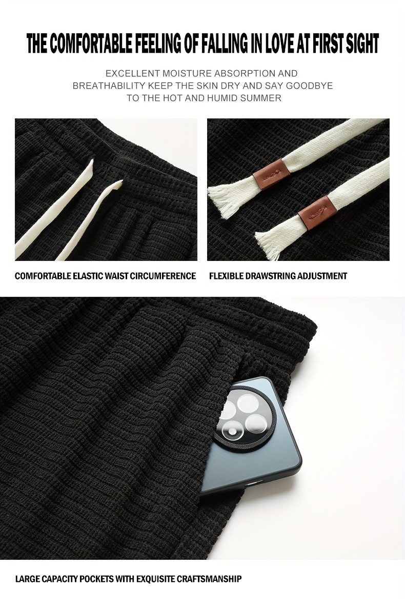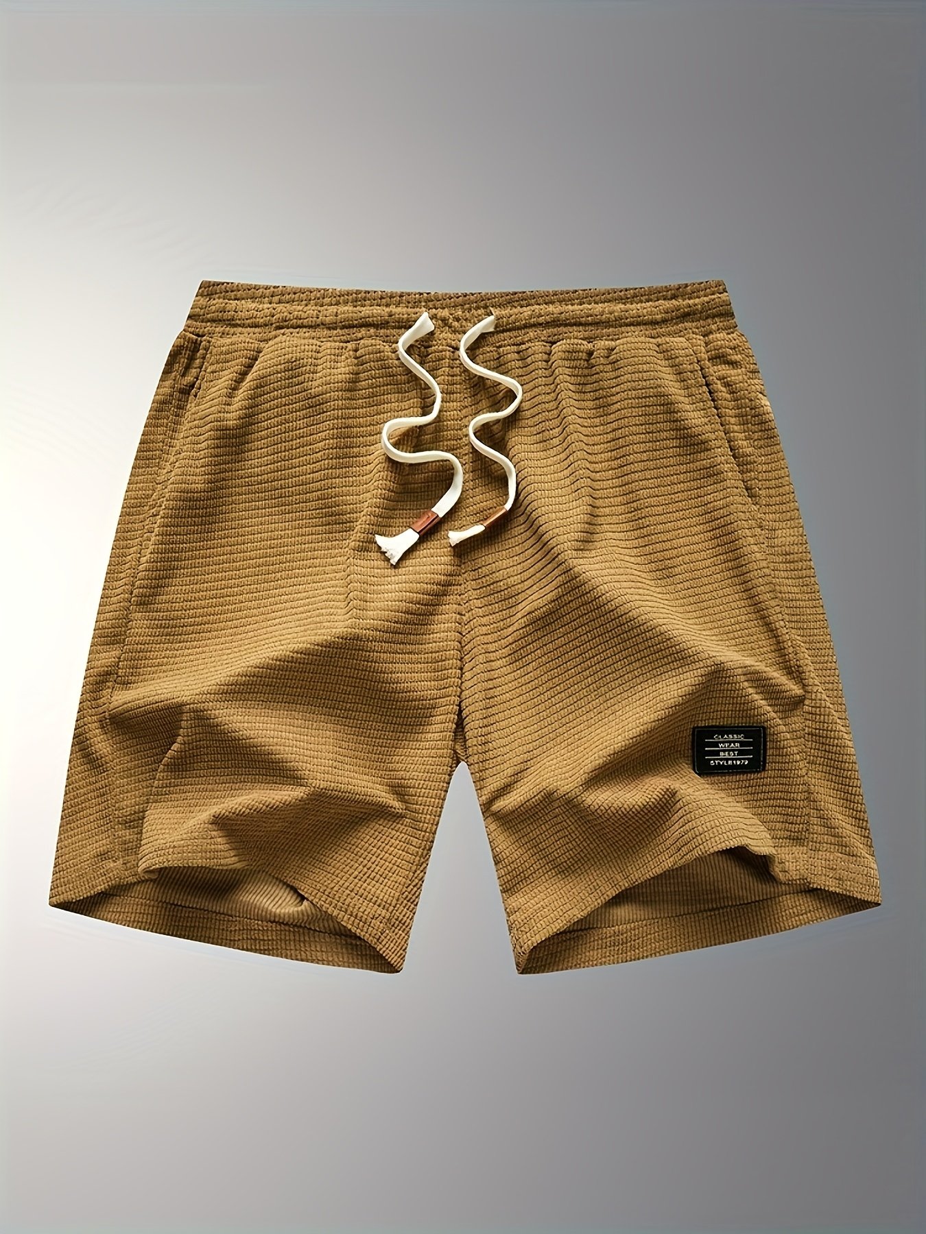 Shorts de Veludo Cotelê Leves para Homens com Cintura com Cordão & Bolsos – Shorts de Natação de Verão Adequados para Praia, Uso Casual – Tecido de Veludo Cotelê (Lavável à Mão)